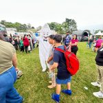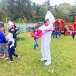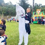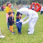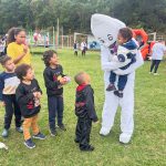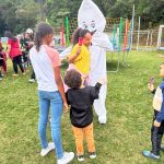 Durante o Dia D, a equipe de saúde, junto com o Zé Gotinha, esteve nas ruas do território levando orientação sobre a importância da vacinação para crianças e adolescentes.